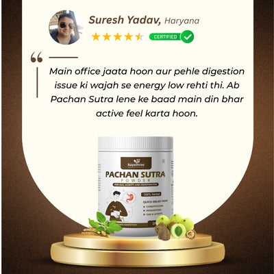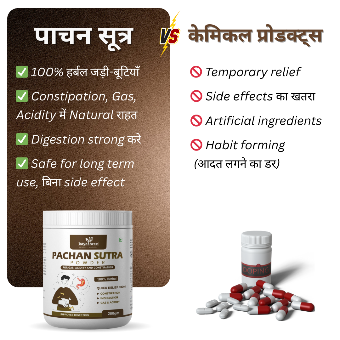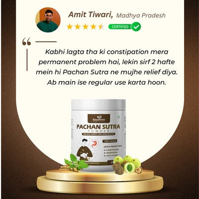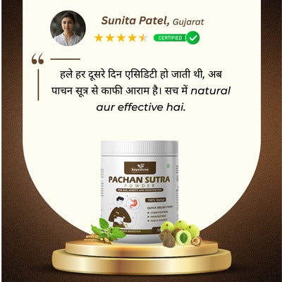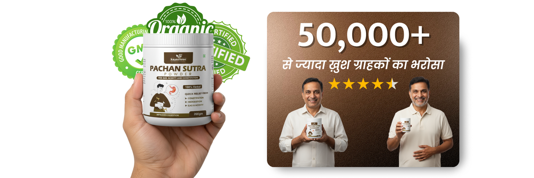Kayashree Pachan Sutra is 100% pure, natural, and safe for daily use. It promotes smooth digestion, regular bowel movements, and better nutrient absorption.