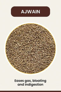 It contains Ayurvedic herbs like Jeera, Ajwain, Saunf, Haritaki, Pippali, Amla, and Hing β all known for their digestive and carminative properties.