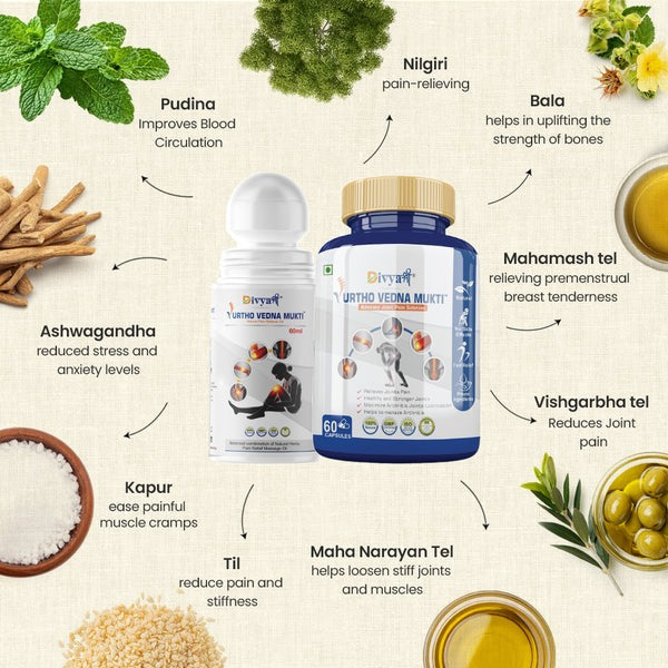Urtho-Vedna Mukti Kit helps in removing stiffiness, pain, swelling and much more. It also helps in improving flexibility and mobility of joints.